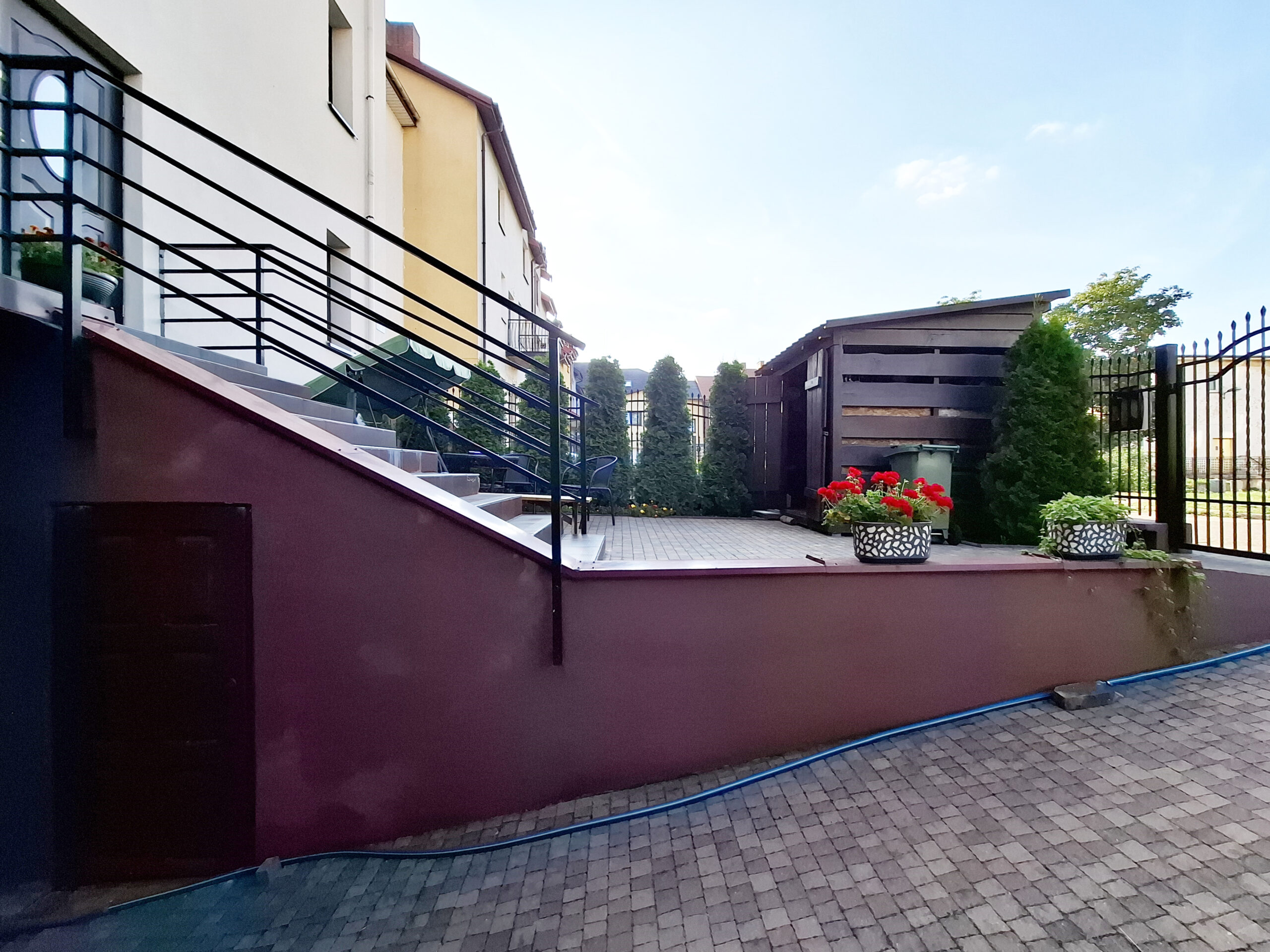 Zarówno przed domem, jak i lokalem usługowym cały podjazd wyłożony kostką brukową, co jest niewątpliwym atutem zarówno dla mieszkańców, jak i dla przyszłych klientów.