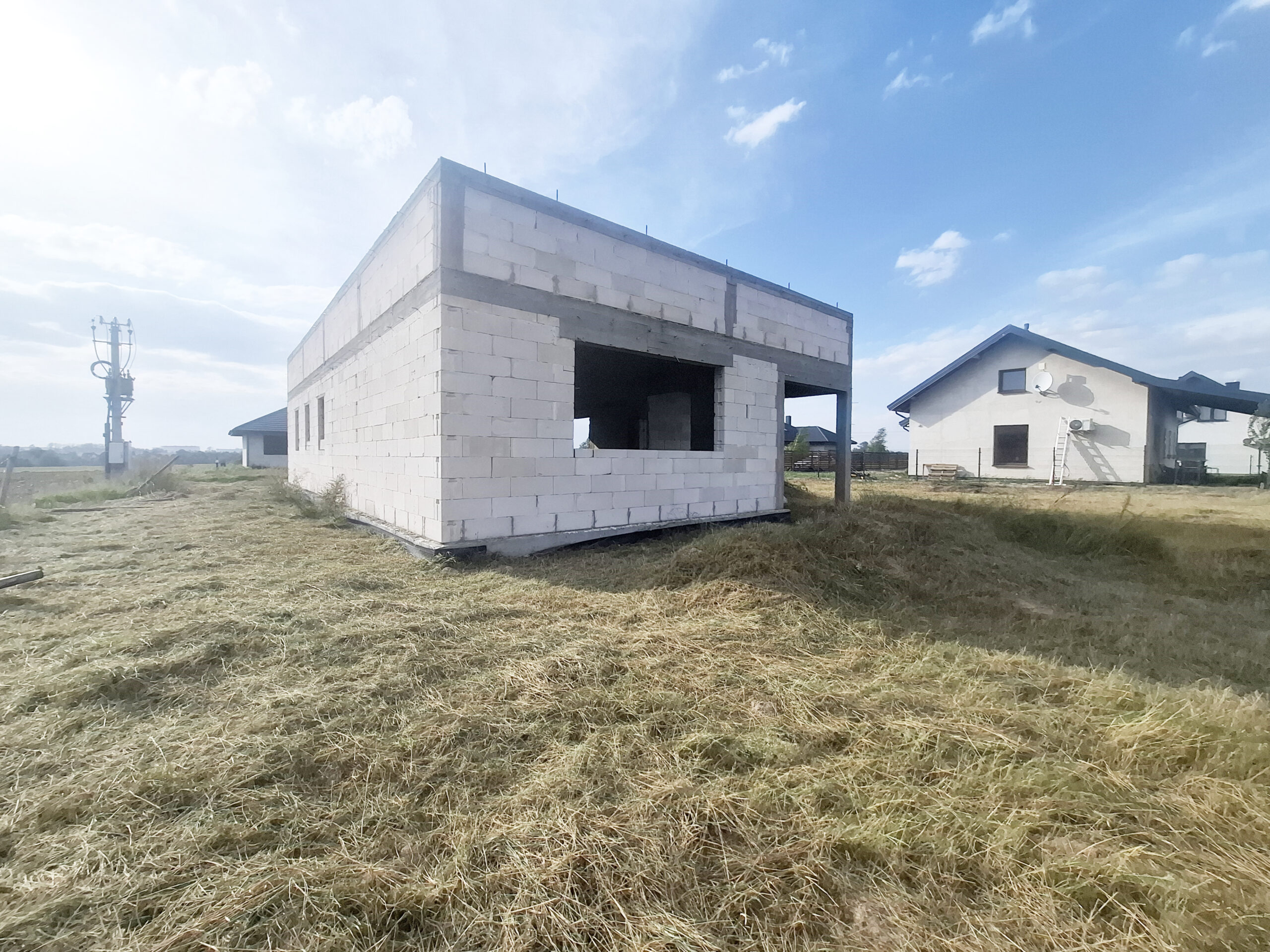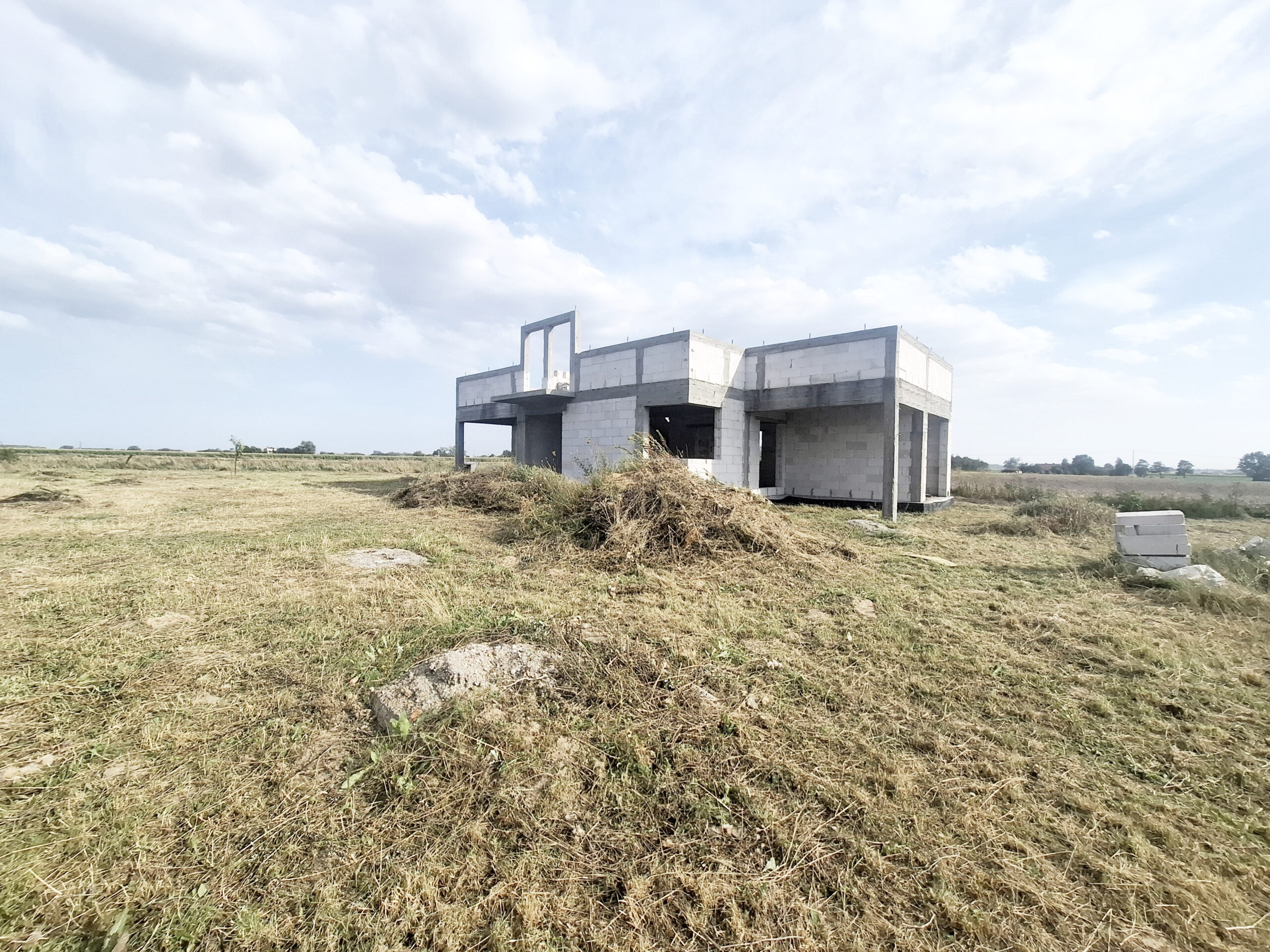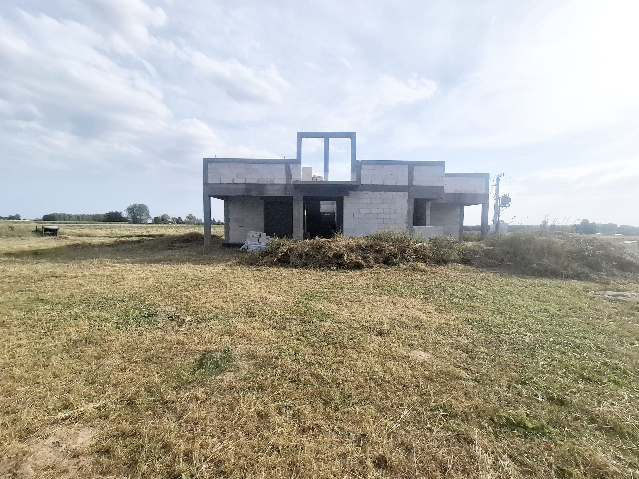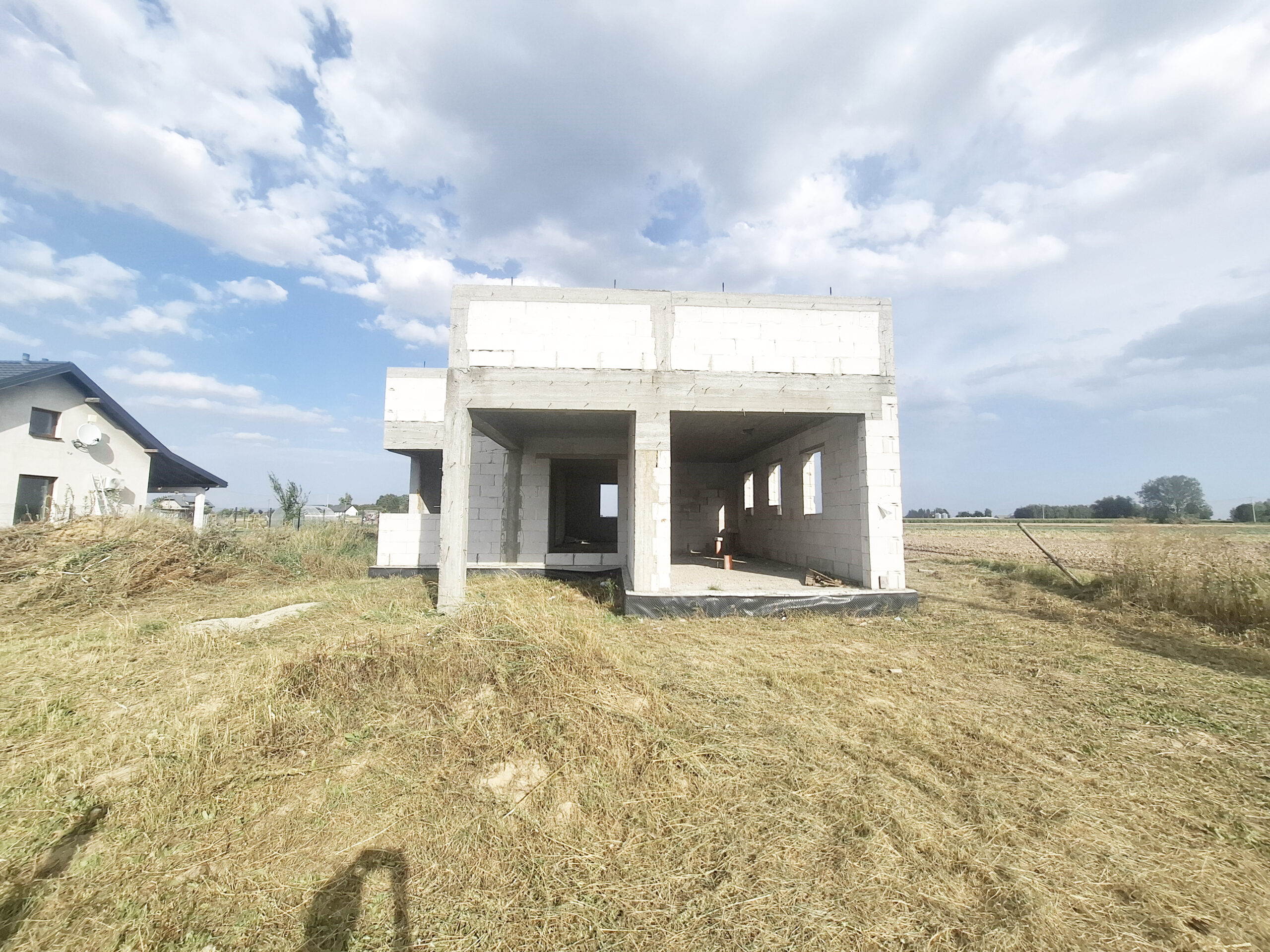 Dom w trakcie budowy, do zrobienia i zakończenia budowy pozostało: więźba drewniana, dachówka/blachodachówka, rynny, okna, drzwi, elewacje, ocieplenie i wykończenie w środku.