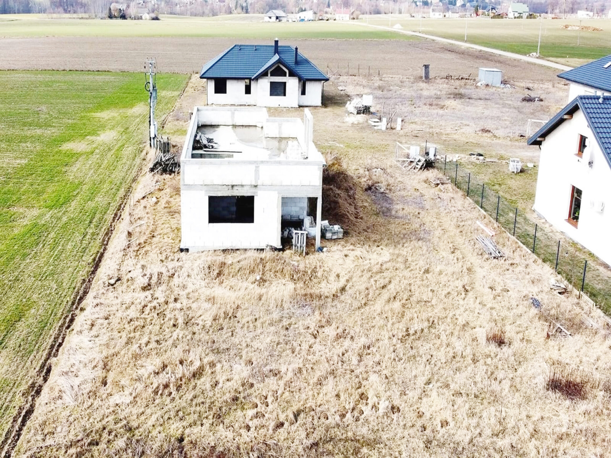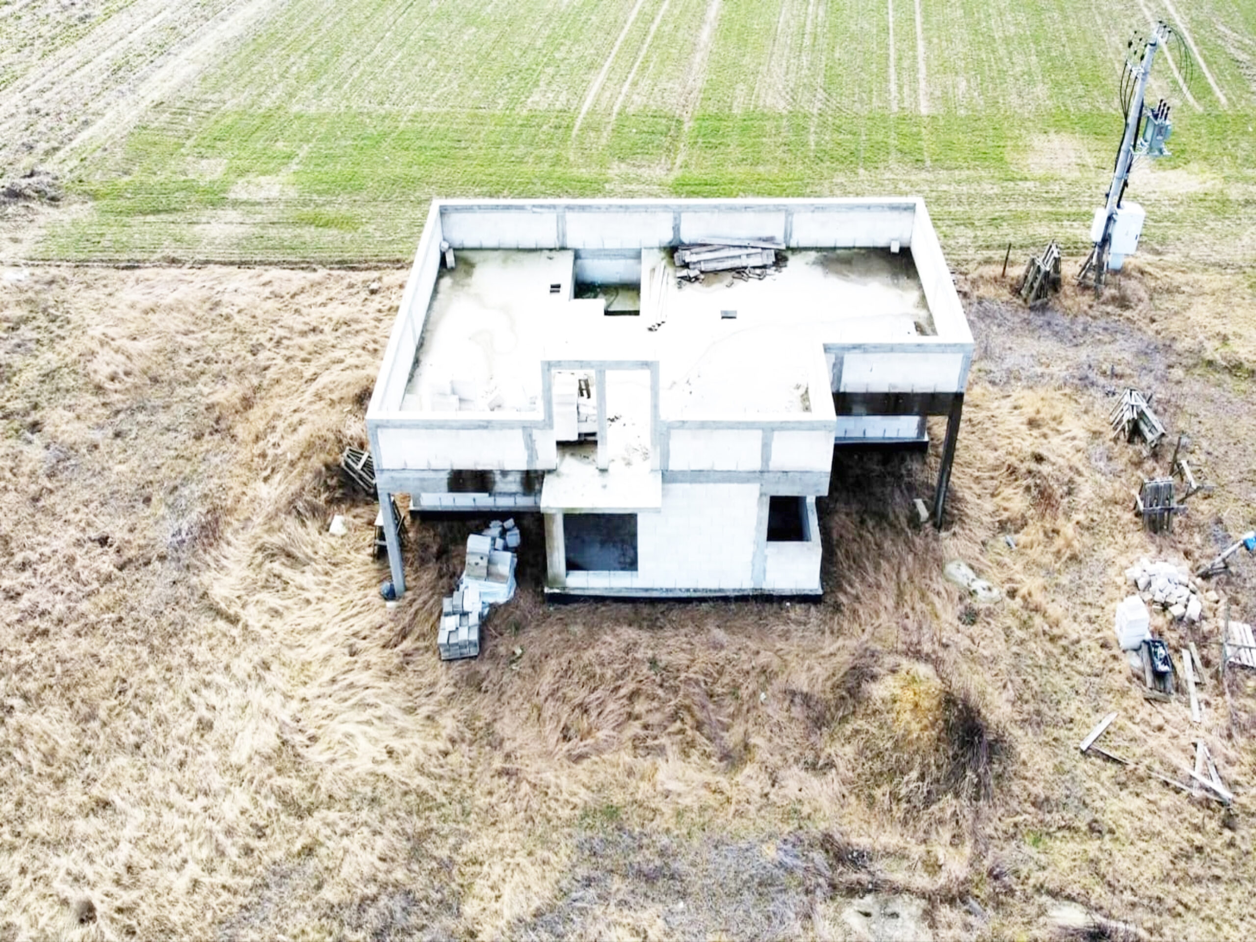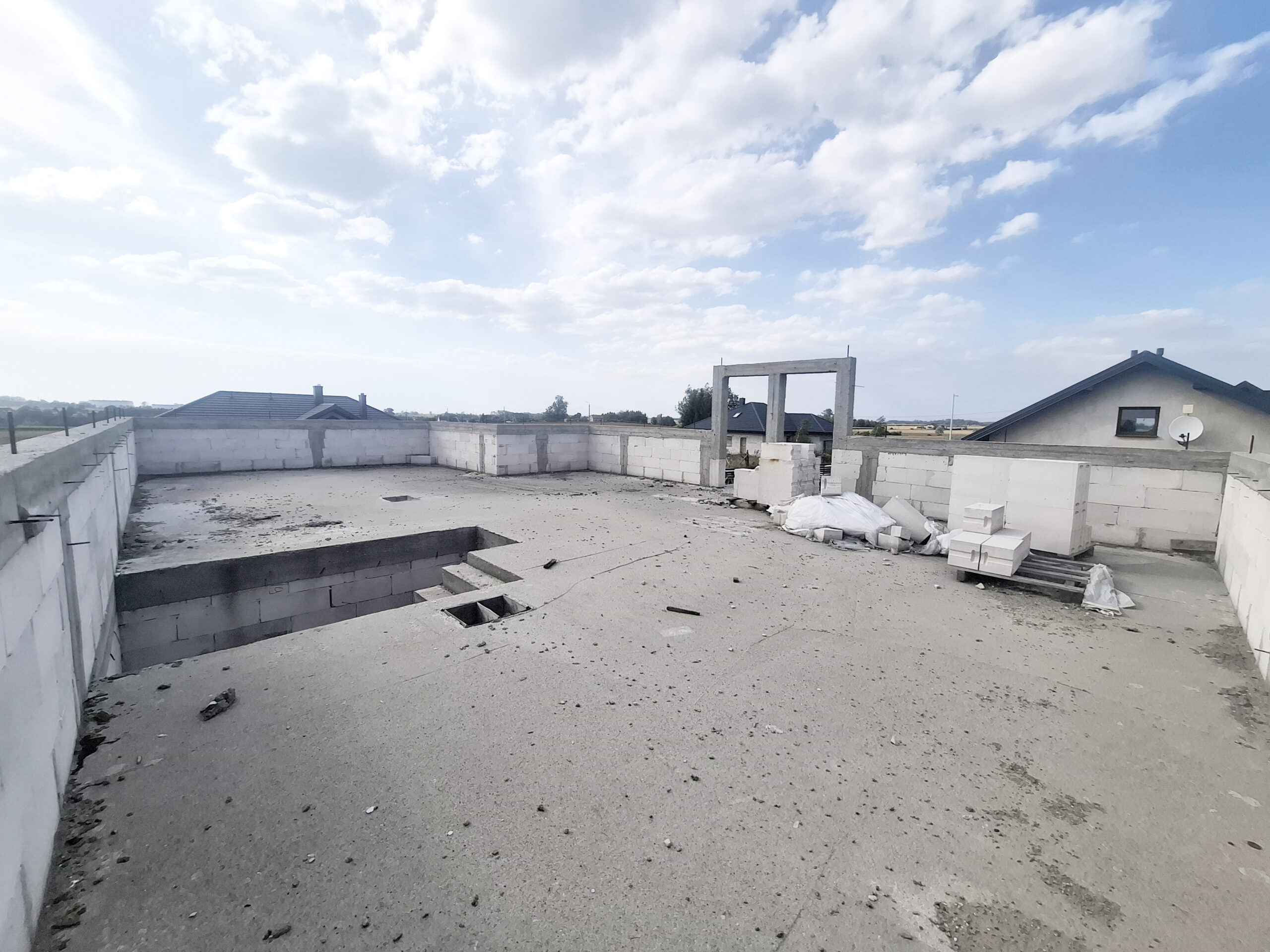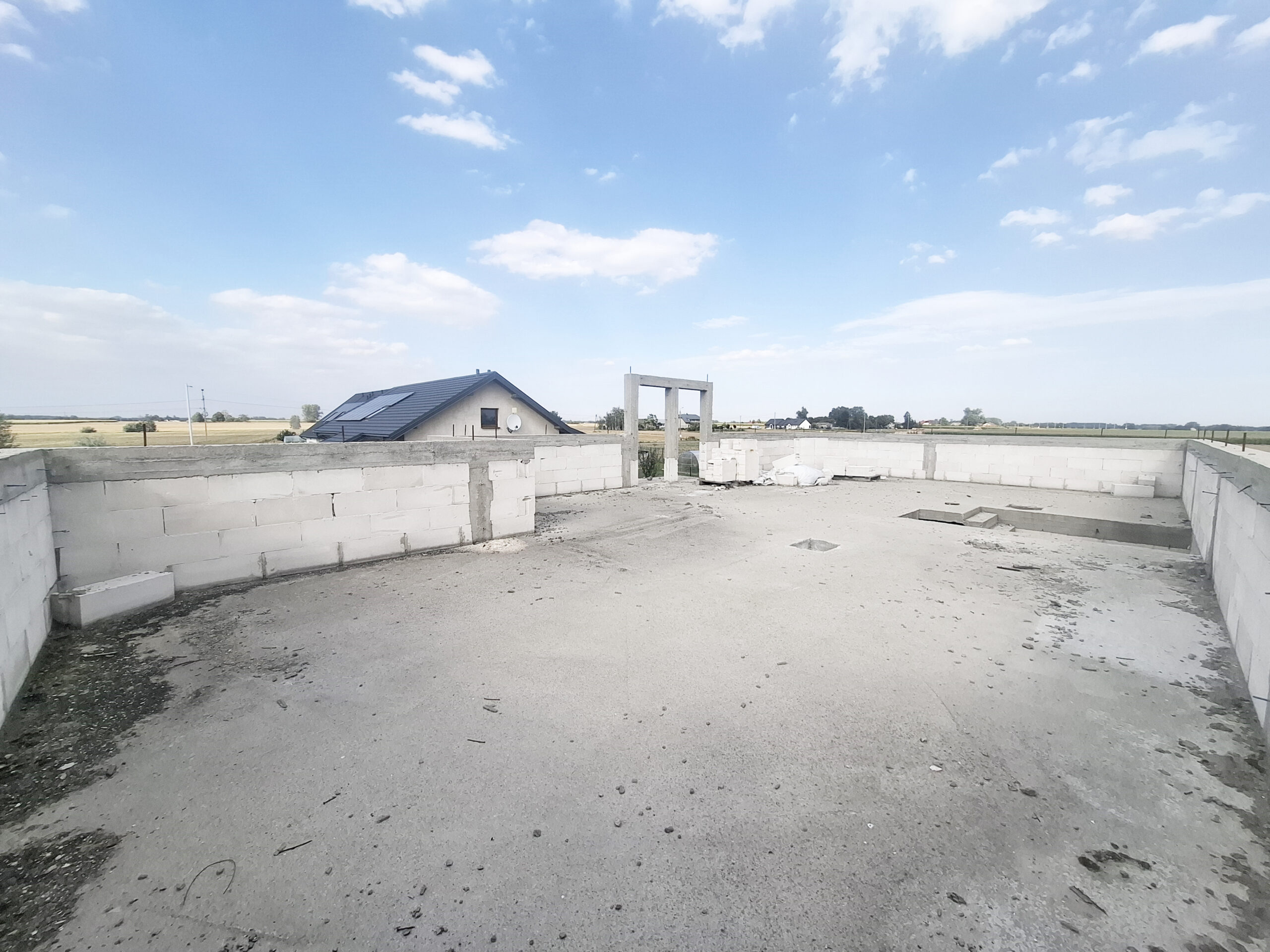 Dom w trakcie budowy, do zrobienia i zakończenia budowy pozostało: więźba drewniana, dachówka/blachodachówka, rynny, okna, drzwi, elewacje, ocieplenie i wykończenie w środku.