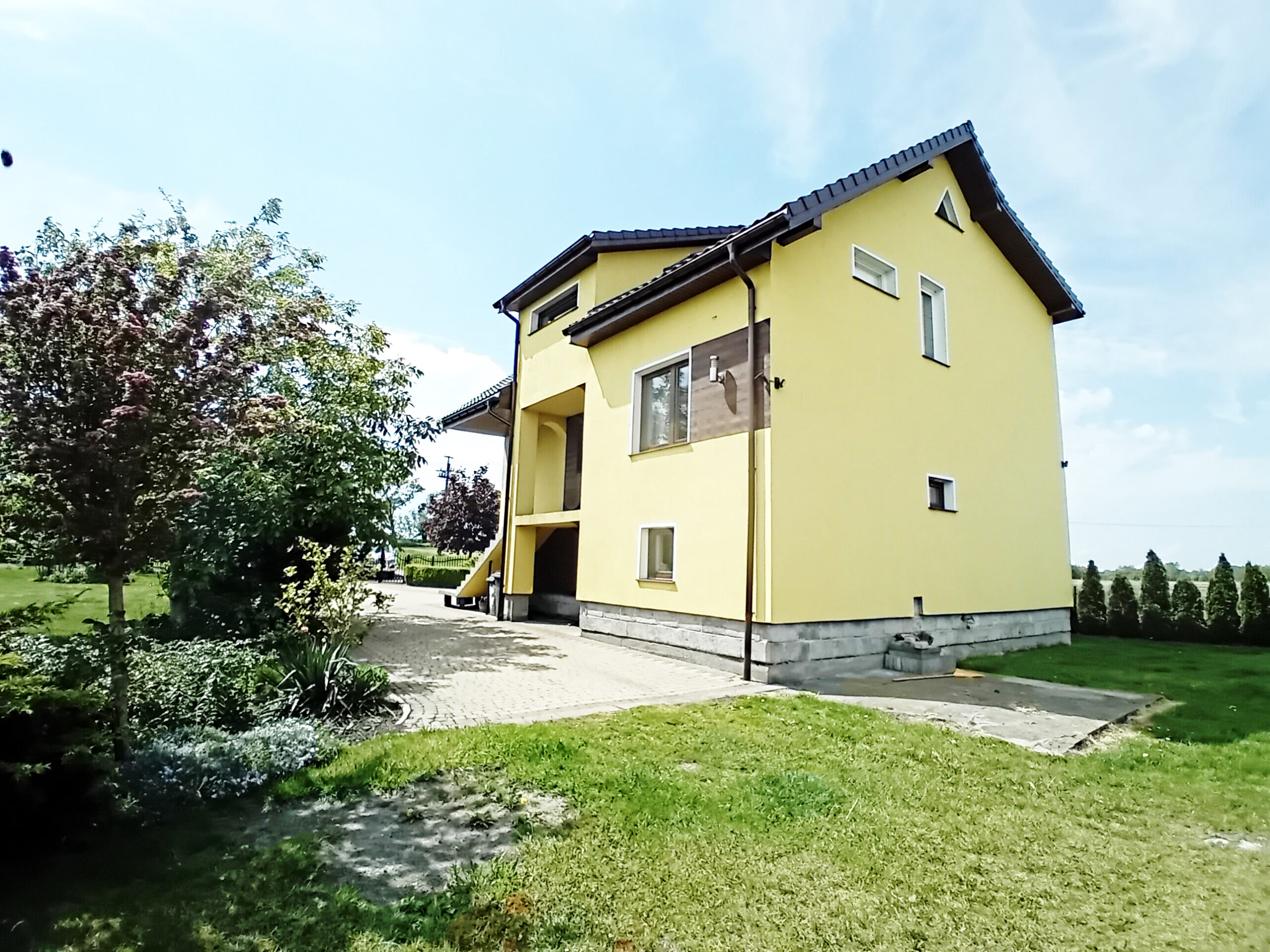 Przed domem cały podjazd wyłożony kostką brukową, co jest niewątpliwym atutem zarówno dla mieszkańców, jak i dla przyszłych klientów.