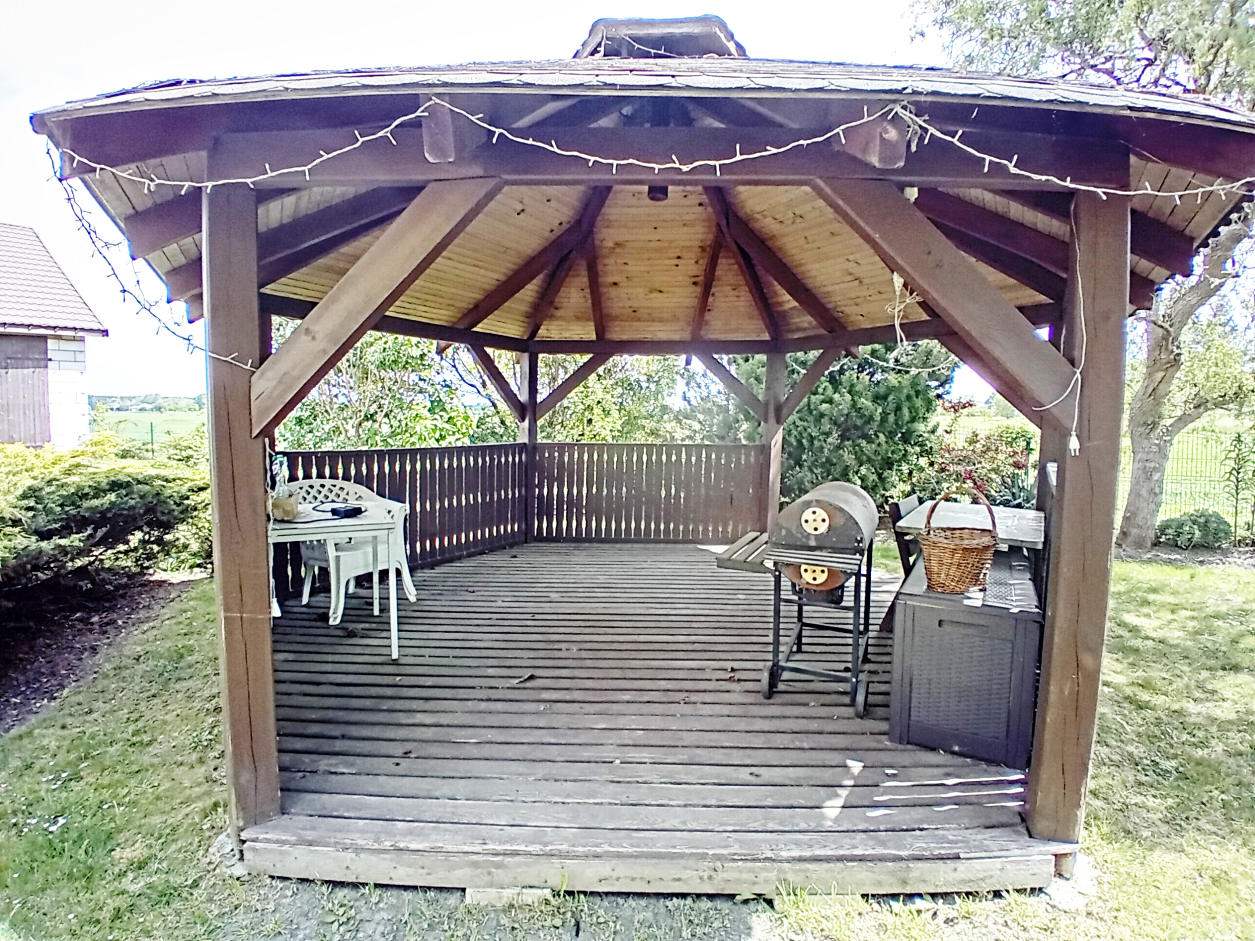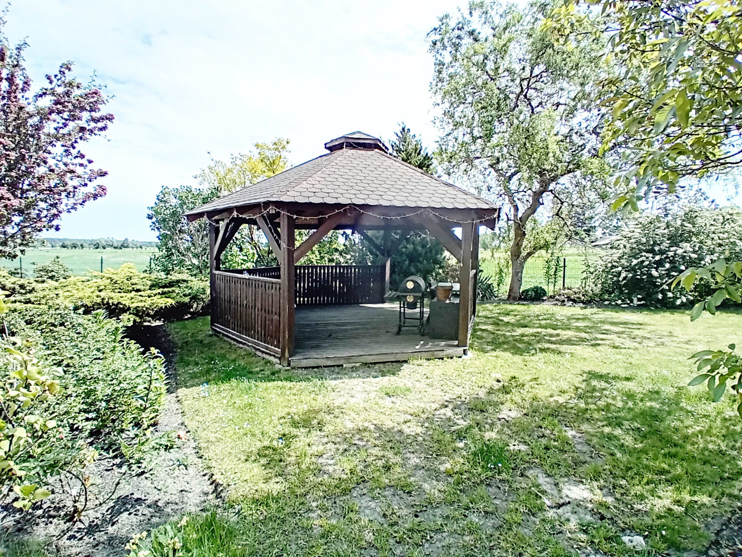 Na działce znajduję się piękna, drewniana altanka – idealna na letnie wieczory, spędzone na świeżym powietrzu. Z tylu za budynkami staw do przyszłego zarybienia.