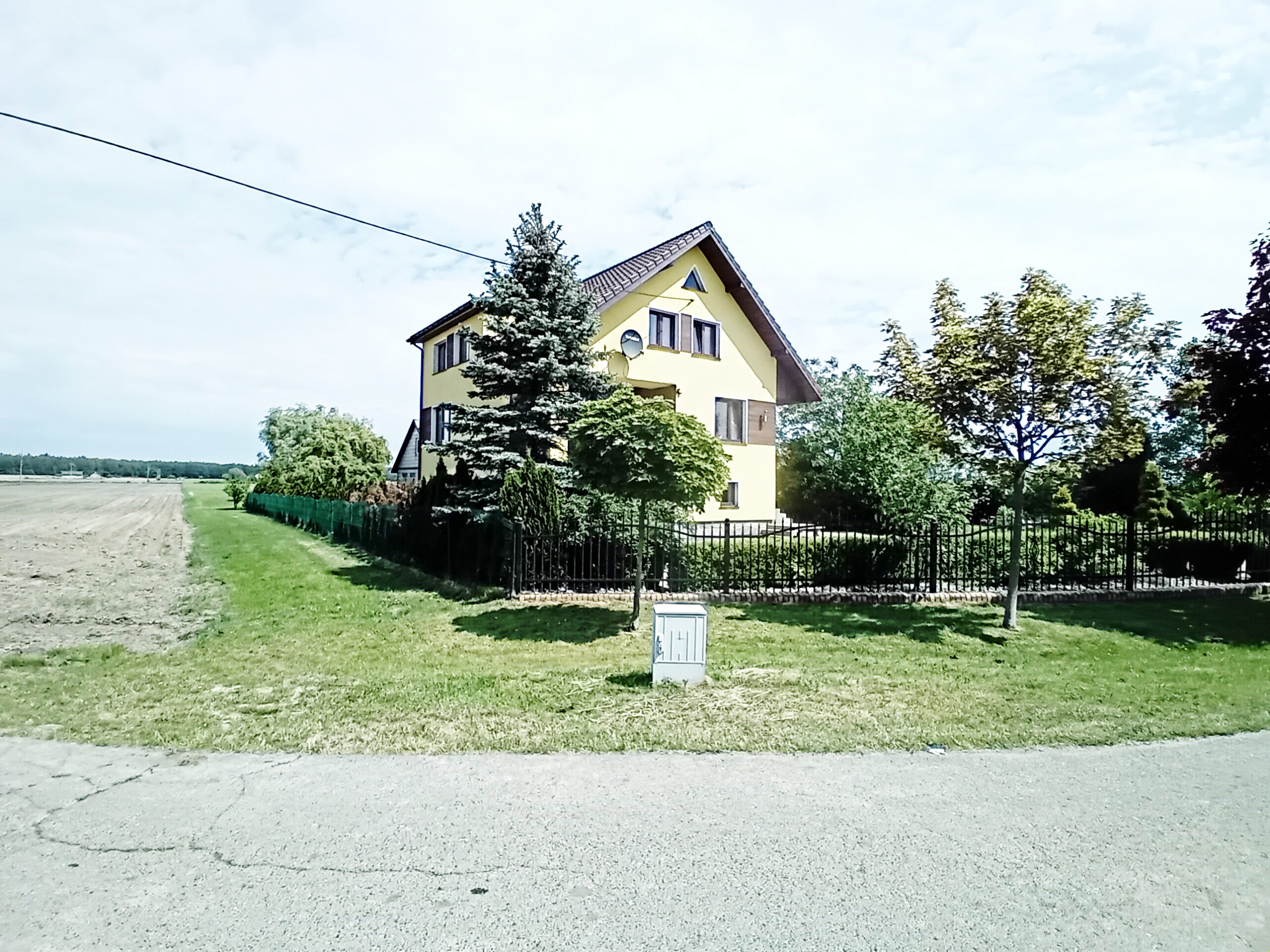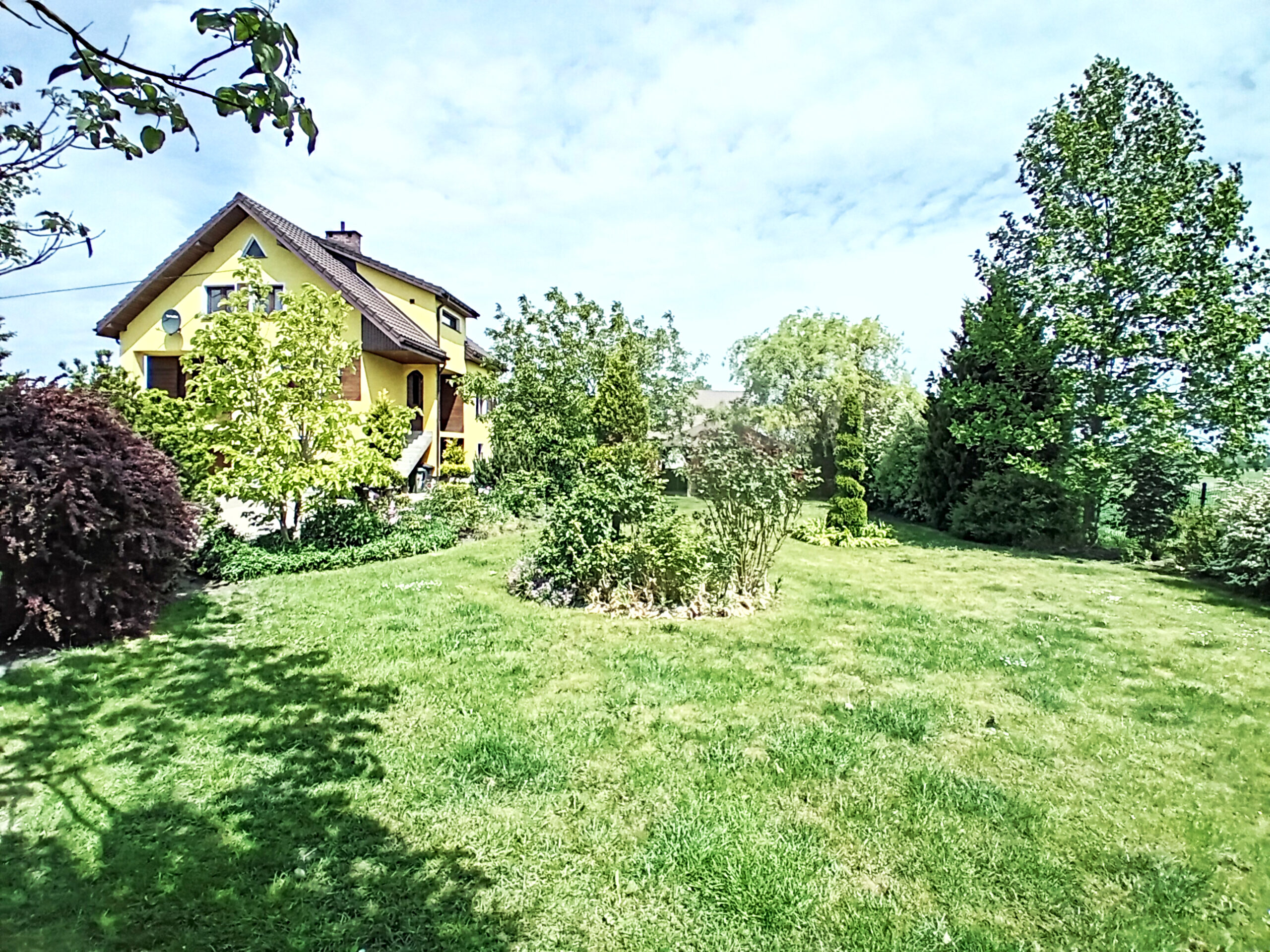 Na sprzedaż duży i atrakcyjny dom parterowy wolnostojący, podpiwniczony z poddaszem użytkowym o powierzchni użytkowej 104,70 mkw. oraz powierzchni gospodarczej 62,50 mkw. (powierzchnia całkowita 230,40 mkw.). Posadowiony na działce nr 162/163/164/168 o powierzchni całkowitej 16700 mkw.. Dom budowany z „myślą o sobie” na podstawie indywidualnego projektu z ciekawymi rozwiązaniami architektonicznymi. Początek budowy 1994 rok, odebrany w 1999 roku.