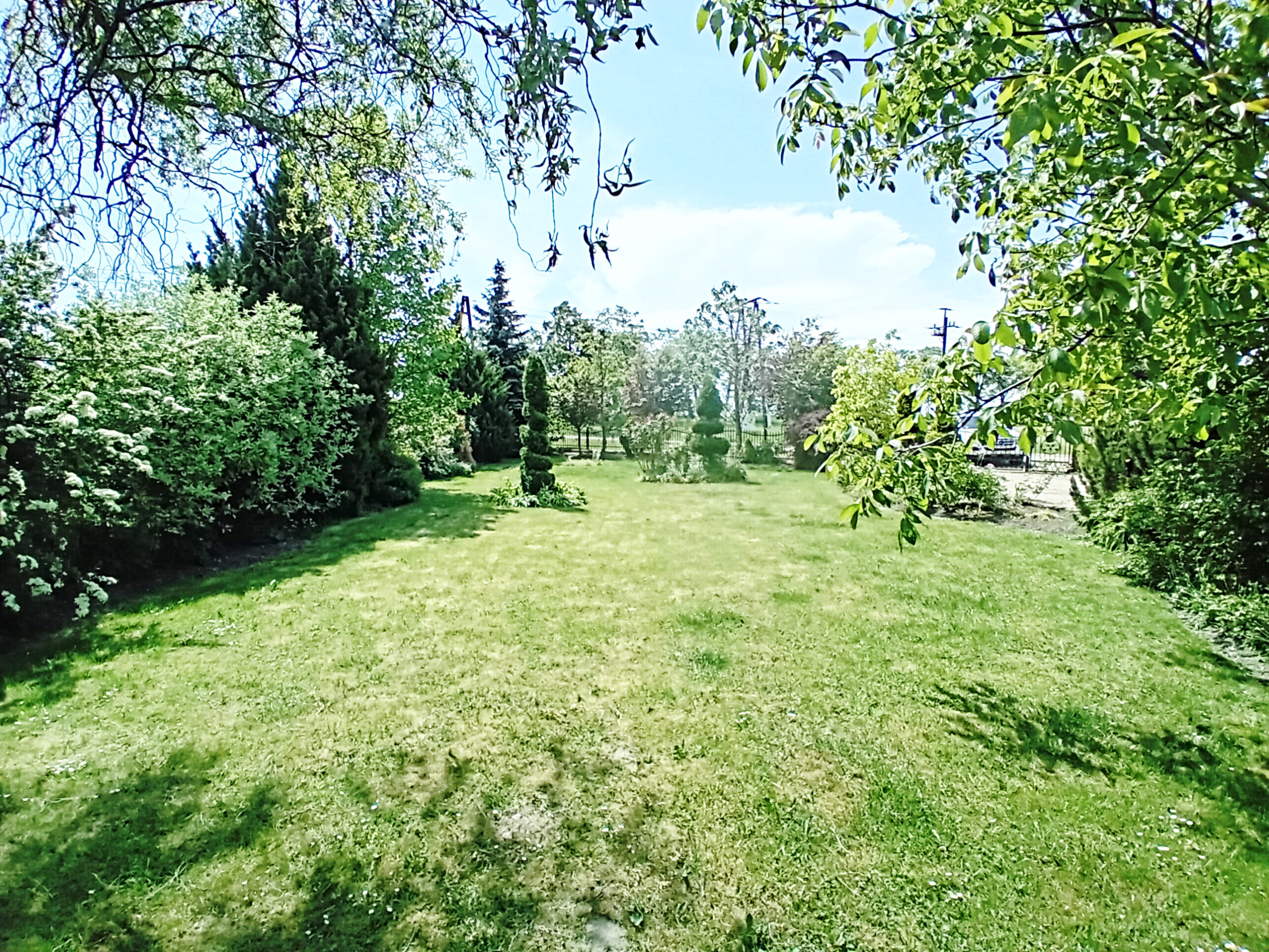 Posesja ogrodzona trwałym ogrodzeniem z cegły klinkierowej i metalowych przęseł, które posłuży nowym właścicielom wiele, kolejnych lat.