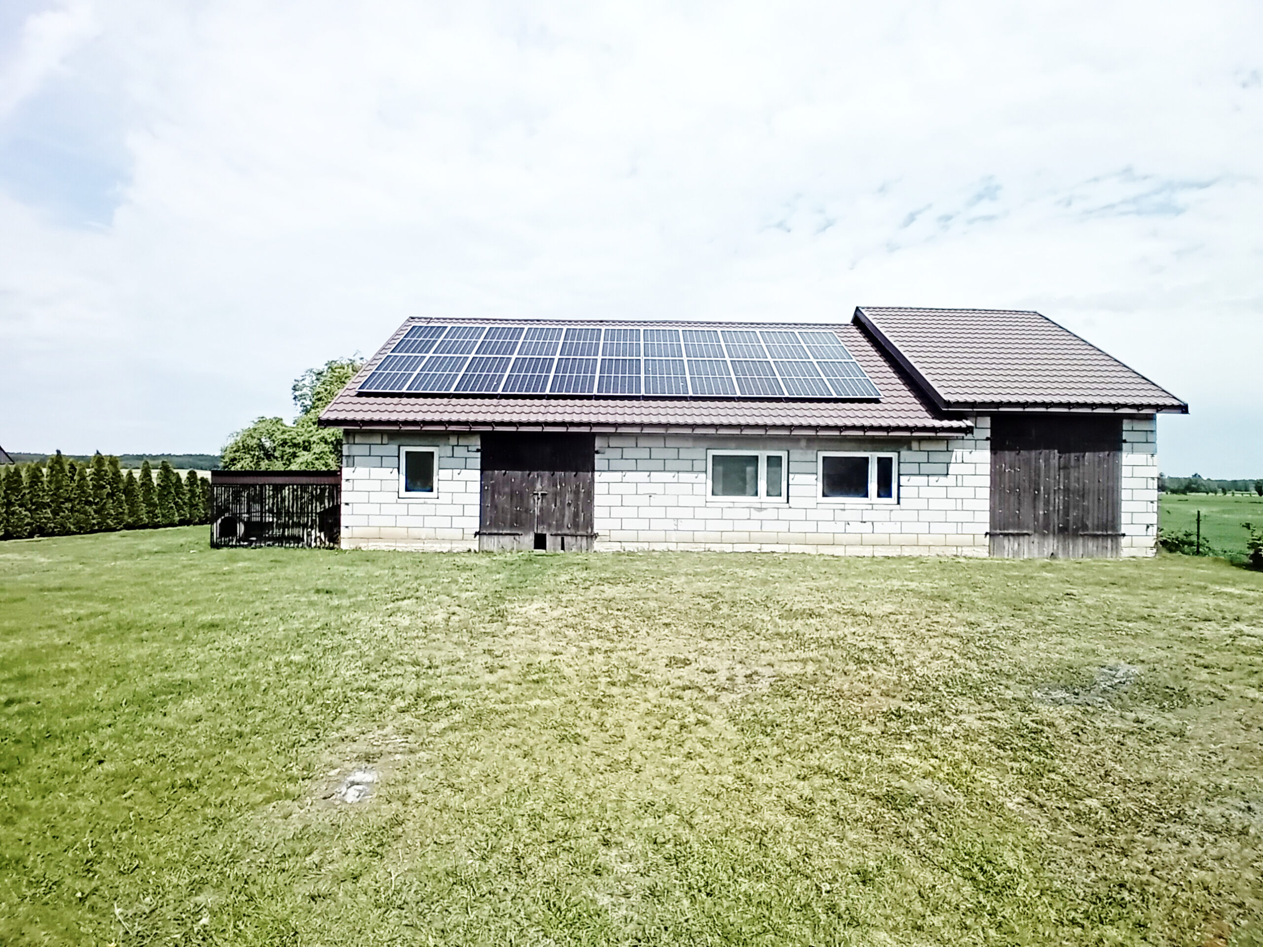 Na budynku usługowym zainstalowana instalacja fotowoltaiczna, panele fotowoltaiczne o mocy 9,5 kW.